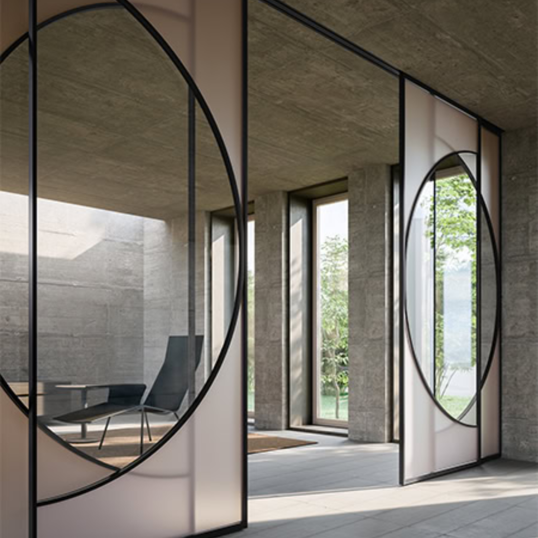 The Deco sliding door introduces dynamic graphic compositions through movement. As the panels shift, their intersecting lines create ever-changing patterns—an elegant visual rhythm inspired by the refined style of the early 20th century.