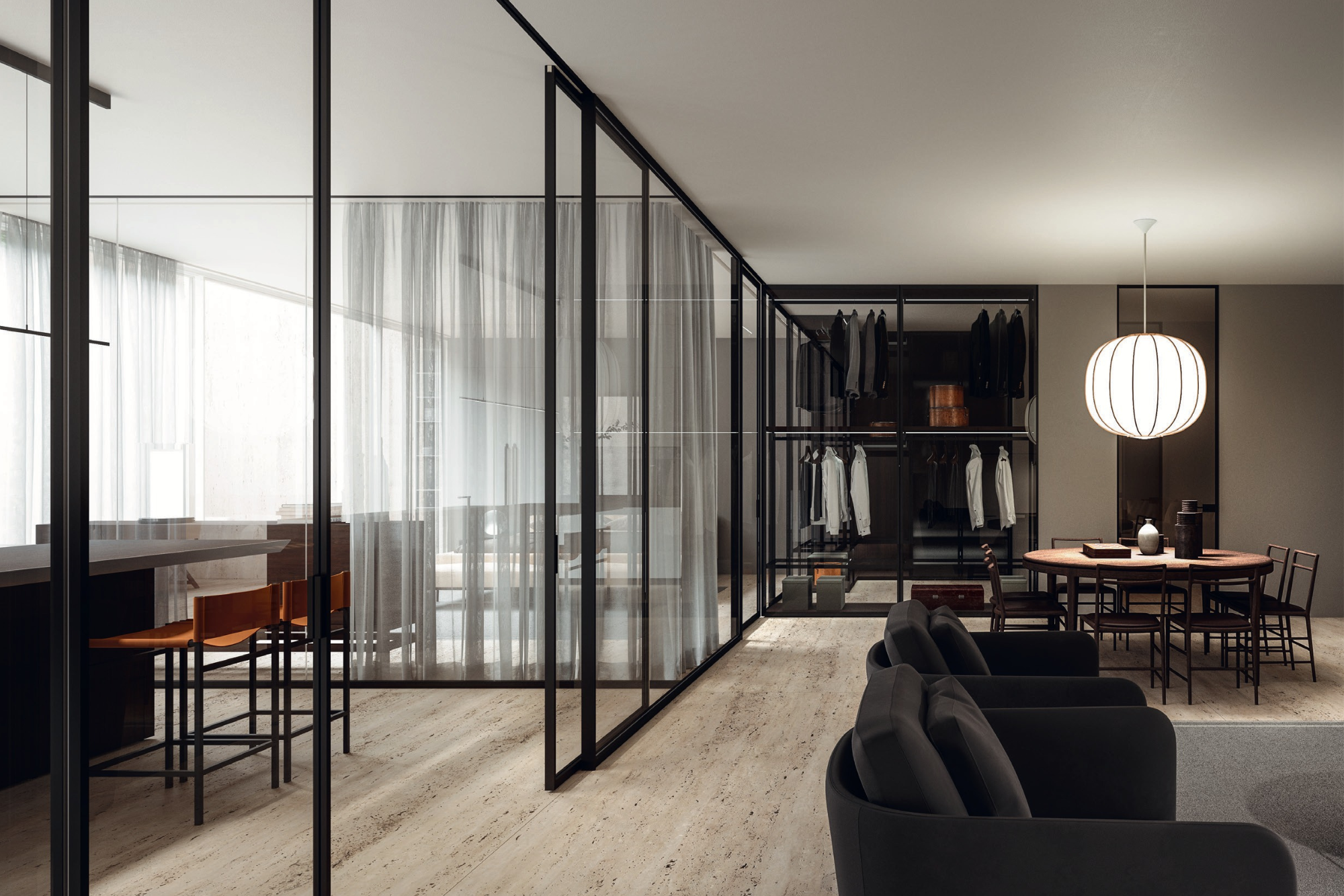 A single-glazed partition system that balances transparency, light, and acoustic control with architectural precision.